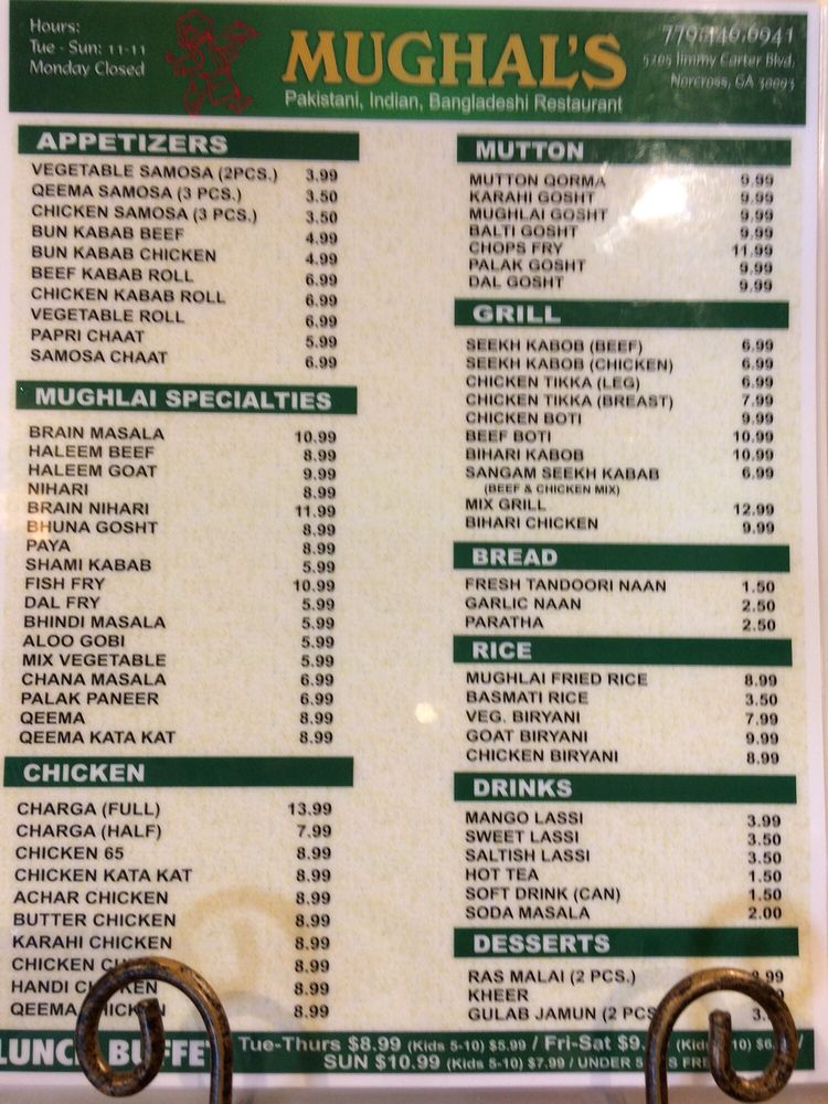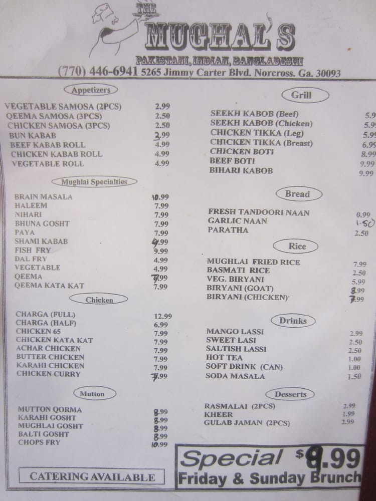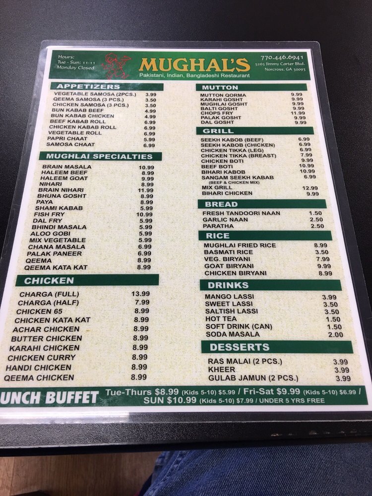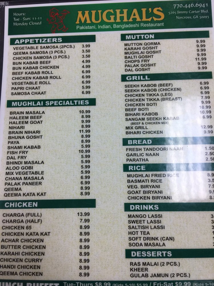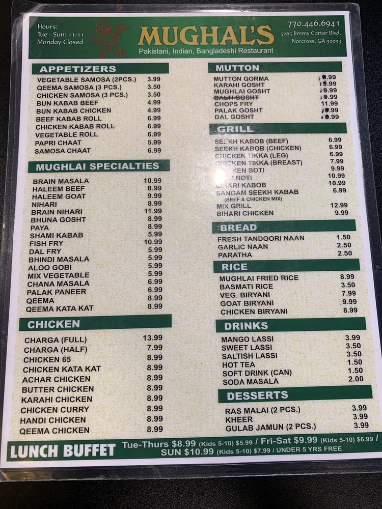 Mughals is a Pakistani and Indian cuisine restaurant located in Norcross, GA. Known for its Halal options, the menu features a variety of dishes like biryani, karai chicken, and goat curries that have received rave reviews from customers. The restaurant offers takeout, outdoor seating, and free Wi-Fi. The biryani is especially highlighted as the best in Atlanta, with customers praising the flavor, richness, and authenticity of the dish. The portion sizes are generous, and the prices are reasonable, making it a popular choice for lunch or dinner. Despite some parking and pricing issues post-Covid, Mughals remains a favorite for those seeking flavorful Pakistani food in the area.